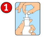 Cortar en la parte superior del sobre con mezcla SINUS RINSE™ y vierta su contenido en la botella. Apretar el tapón y el tubo de la botella de forma segura. Coloque un dedo sobre la punta de la tapa y agite el frasco suavemente para disolver la mezcla.