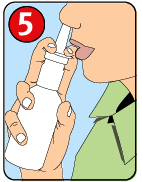 Suénese la nariz muy suavemente, sin aplastarla para evitar la presión en los tímpanos. Si es tolerable, suene suavemente una o dos veces cualquier solución residual restante en el pasaje nasal, porque esto puede despejar el área posterior naso-faringe, correspondiendo al pasaje nasal. A veces algo de solución puede llegar a la parte posterior de la garganta, si es el caso, escupa.